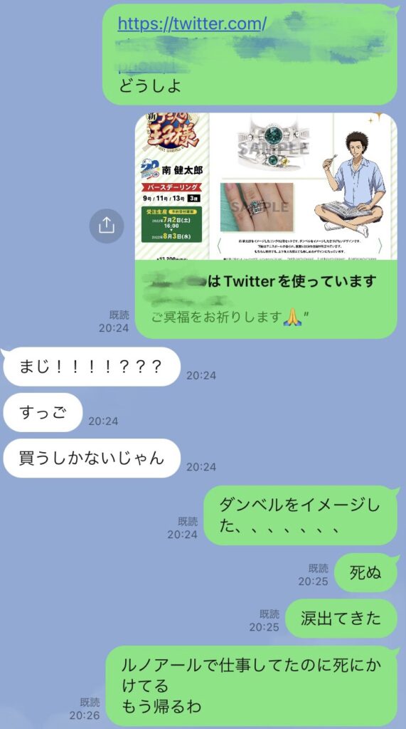 歴戦のテニスのオタクにLINEをし、この2022年に、南健太郎くんのバースデーリングが出る世界線を喜び合い・・・、